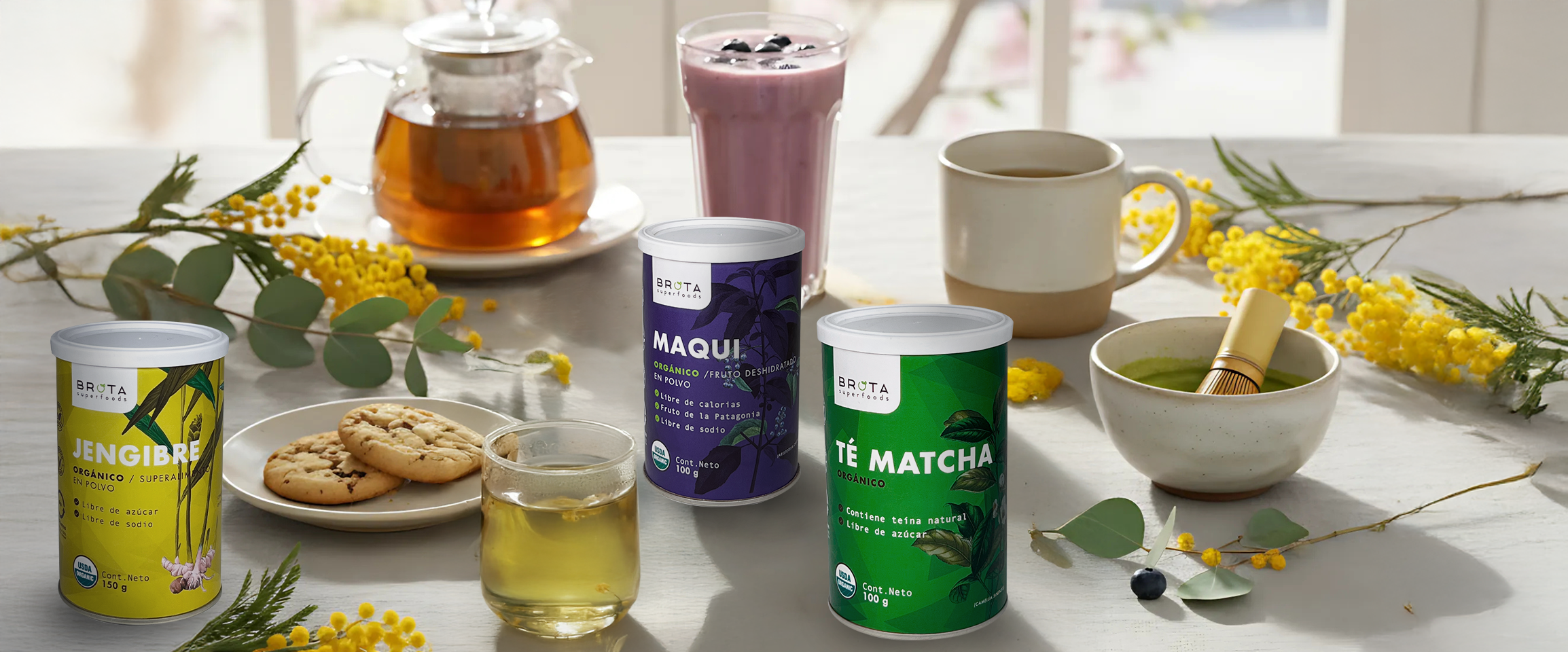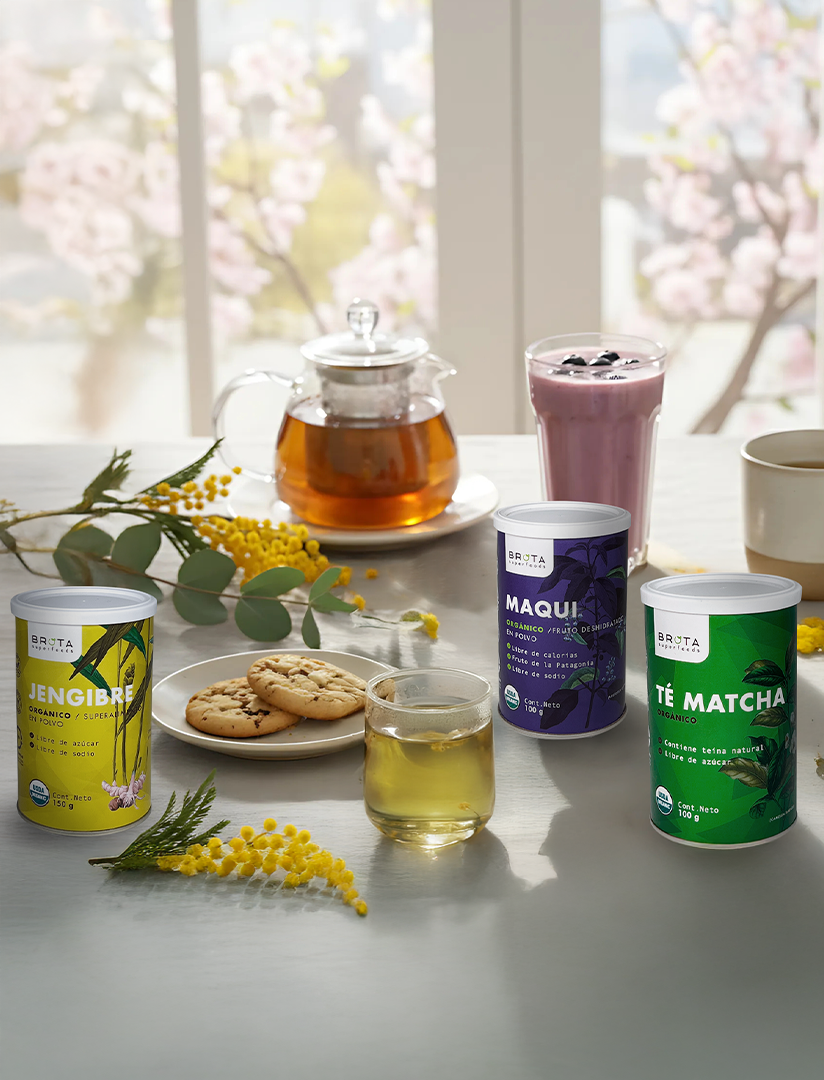 2. En otra taza, disuelve 1 cucharadita de Té Matcha Brota en agua a 80 °C y bate hasta que quede espumoso.